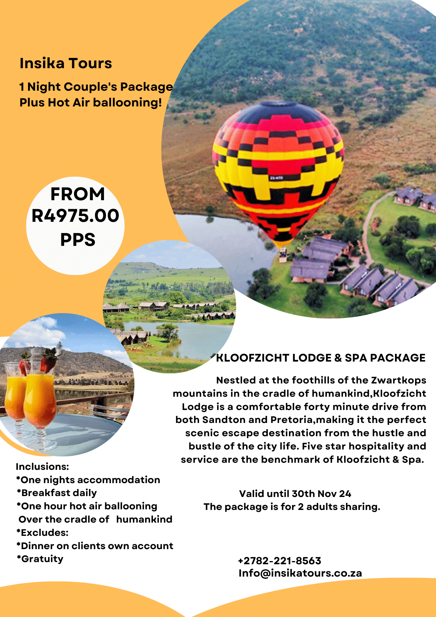 Experience a whole new view of the world? Relax in the beautiful Kloofzicht Lodge & Spa and drift over the Cradle of Humankind in a hot air balloon. The small but magnificent nature reserve upon which Kloofzicht is built, is home to kudu, impala, blue wildebeest, eland, red hartebeest, springbuck, gemsbok, zebra as well as […]
