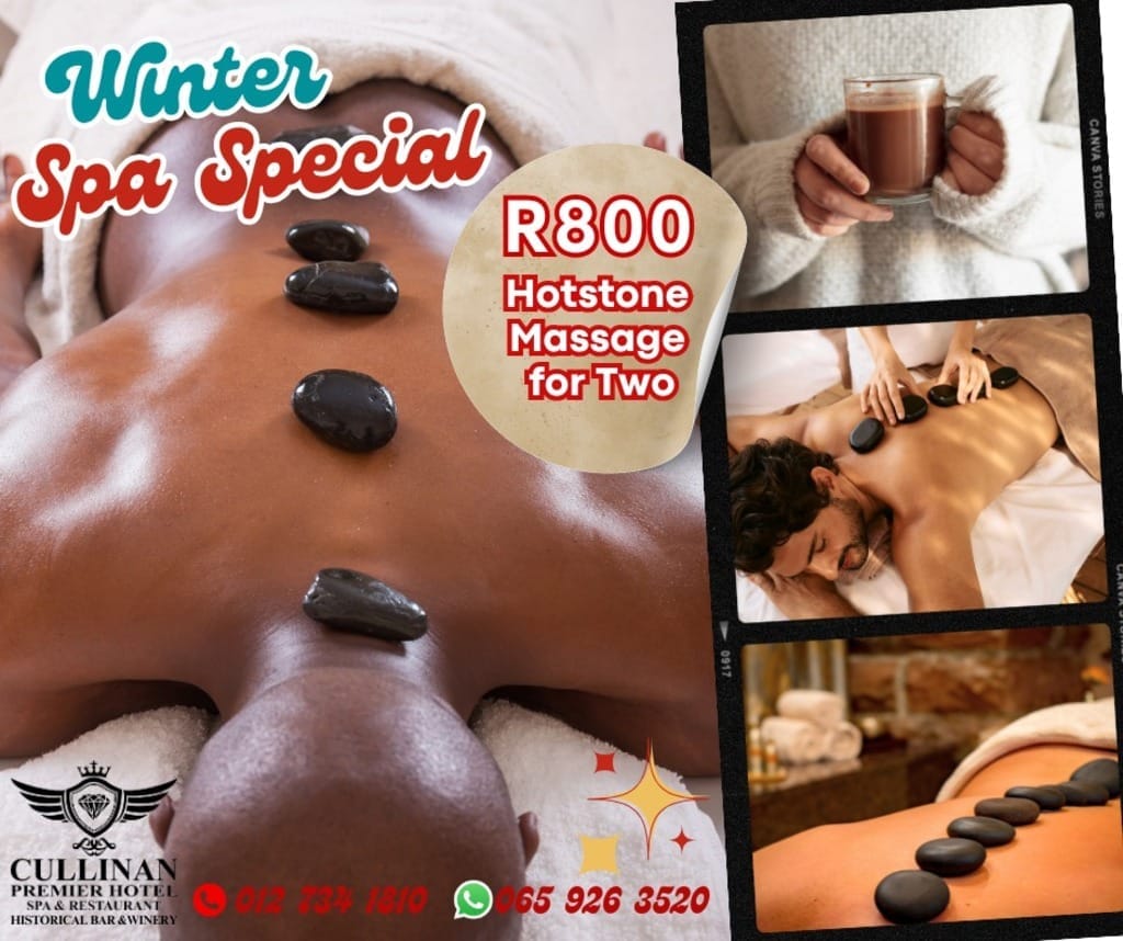 Unwind this winter with our sizzling Hotstone Massage for Two - only R800! Indulge in soothing warmth, total relaxation, and a perfect escape from the cold at Cullinan Premier Hotel Spa. Book now and melt away the chill!