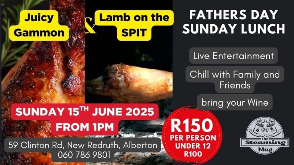 Father’s Day Sunday Feast – 15 June 2025 The Steaming Mug – 59 Clinton Rd, New Redruth, Alberton This Father’s Day, spoil Dad with a feast that brings all the flavour and all the feels. On the menu: Lamb on the Spit – slow-roasted to perfection Glazed Gammon – juicy, tender, and packed with flavour Our Signature Salad […]