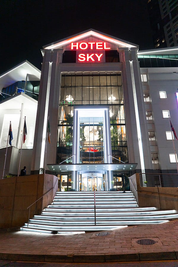 Modern 32-storey hotel in Sandton with infinity pool and panoramic views across Johannesburg. Offers contemporary rooms, a rooftop restaurant, gym, and direct access to Sandton City Mall.