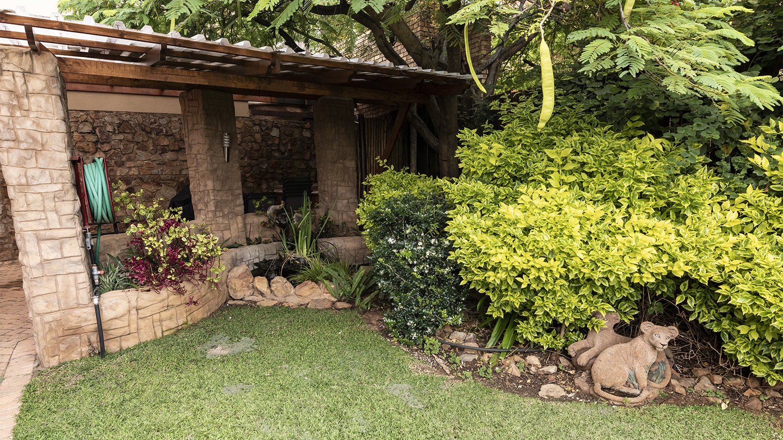Comfortable guesthouse in a quiet Gauteng suburb offering en-suite rooms, a welcoming lounge, braai area, and a garden. A pleasant, affordable base for travellers to the area.