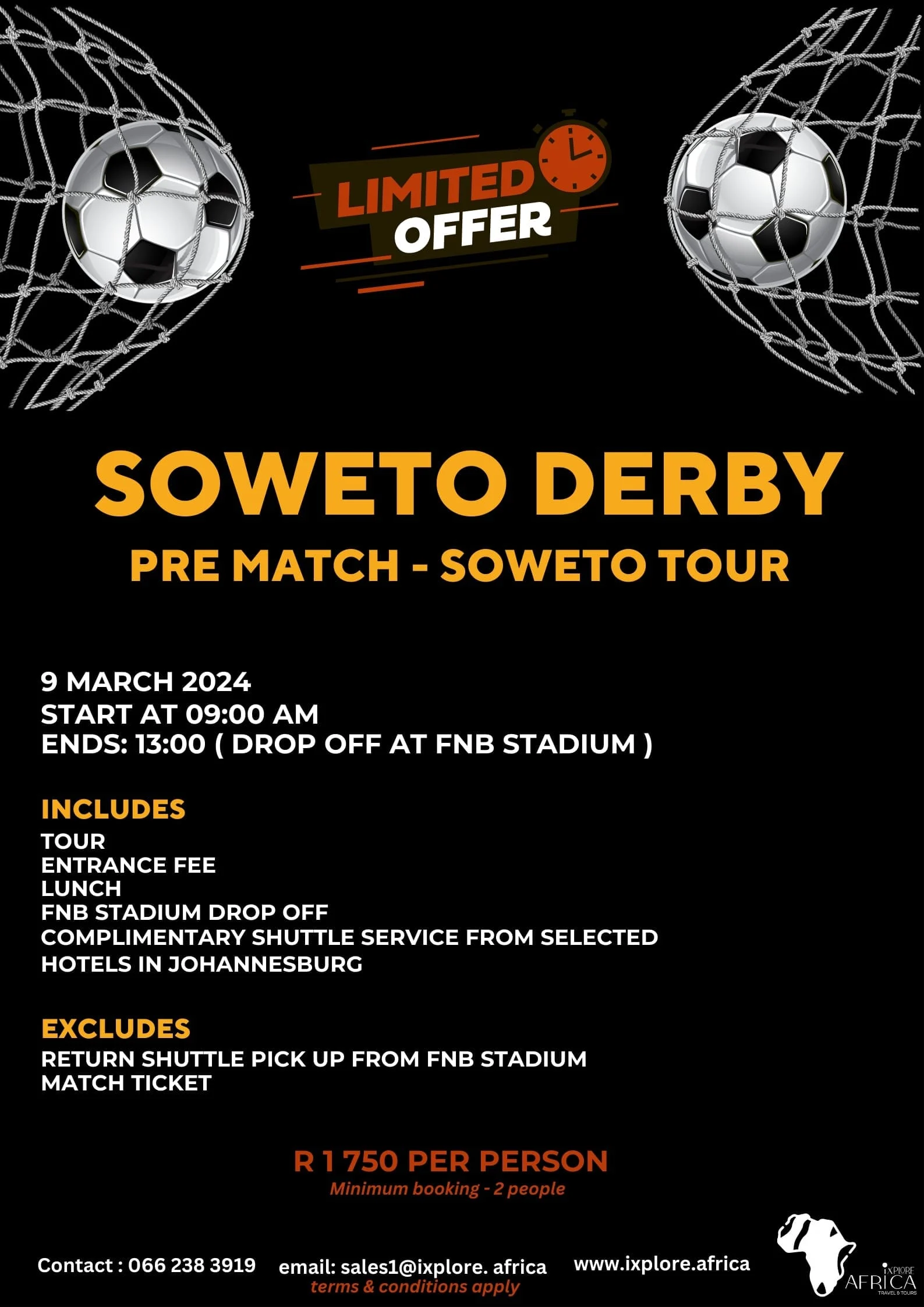 Do not miss out on the opportunity to explore Soweto this weekend before the game starts. Kick off your morning by joining the group as they tour Soweto on Saturday, 9 March 2024 from 09:00. Pick-up shuttle service is available from selected hotels around Johannesburg. Tour route includes: Enter Soweto via Diepkloof Extension Orlando Towers […]