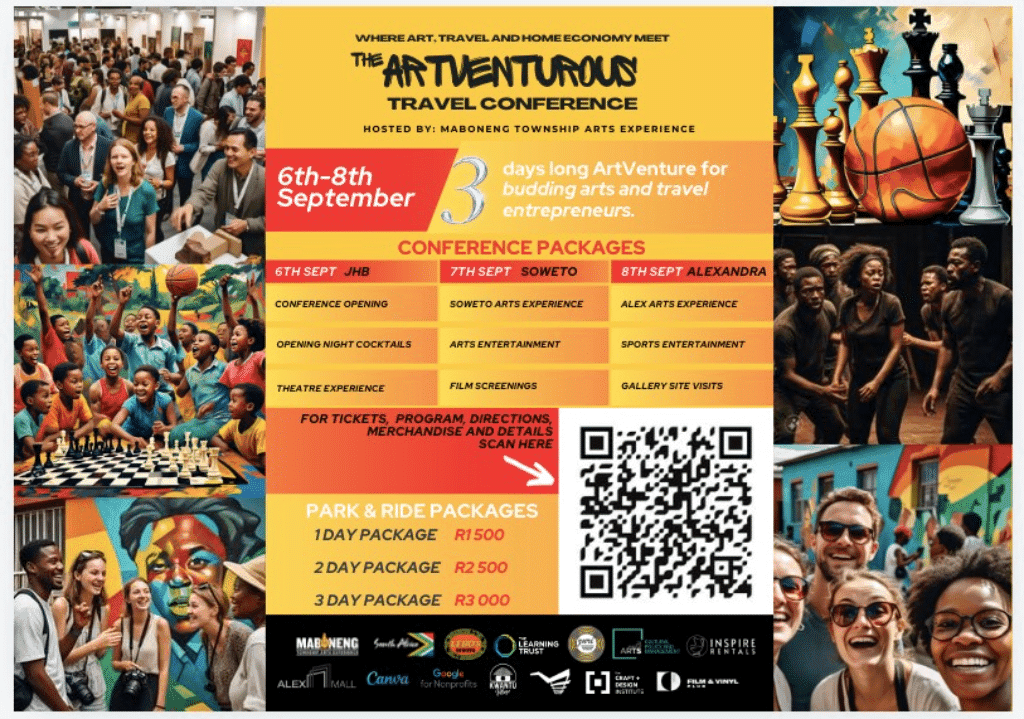 ARTVENTUROUS TRAVEL CONFERENCE: A Journey Like No Other! Join us for a unique 3-day conference set in two of South Africa’s most iconic townships – Soweto and Alexandra. Experience art, culture, and community like never before! Day 1: Wits Theatre | 6th September 2024 Ticket Price:* R1500 Kick off the conference with an unforgettable […]