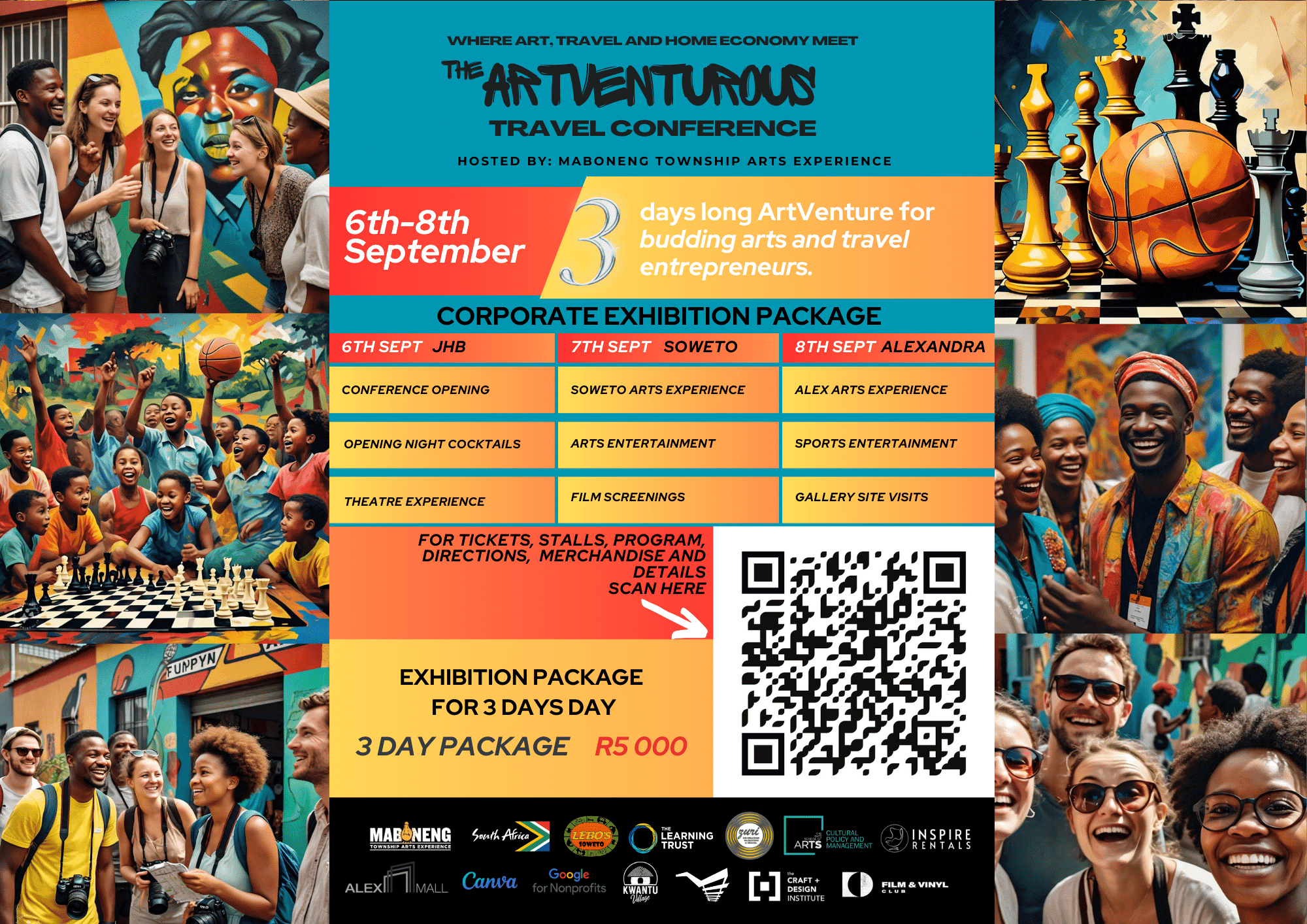 ARTVENTUROUS TRAVEL CONFERENCE: A Journey Like No Other! Join us for a unique 3-day long ArtVenture for budding arts and travel entrepreneurs Exhibition package for 3 days for R5 000 GET YOUR TICKETS NOW! Don’t miss this chance to be part of a truly unique event that blends art, tourism, and community spirit. Secure your […]