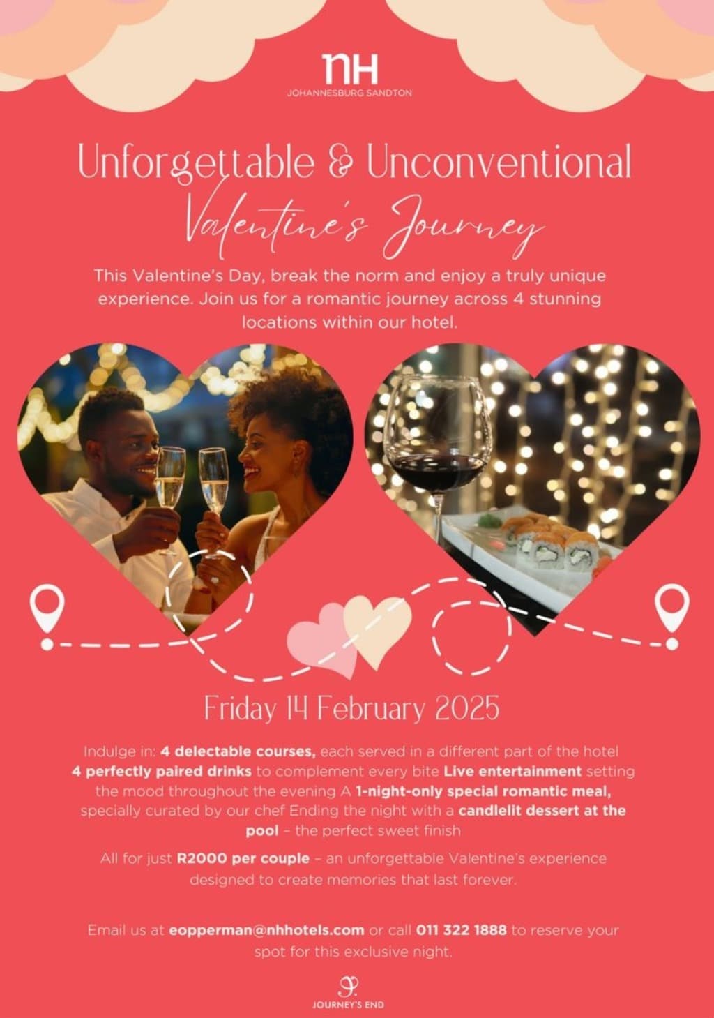 UNFORGETTABLE & UNCONVENTIONAL VALENTINES JOURNEY This valentines Day, break the norm and enjoy a truly unique experience. Join us for a romantic journey across 4 stunning locations within our hotel